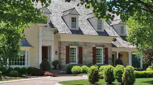 8000 SF Bucks County Style "New Old" farmhouse. Made with recycled Pennsylvannia limestone, wood clapboard, metal and wood roofing, authentic wood true divided lite windows and trim details of the Bucks County Style.